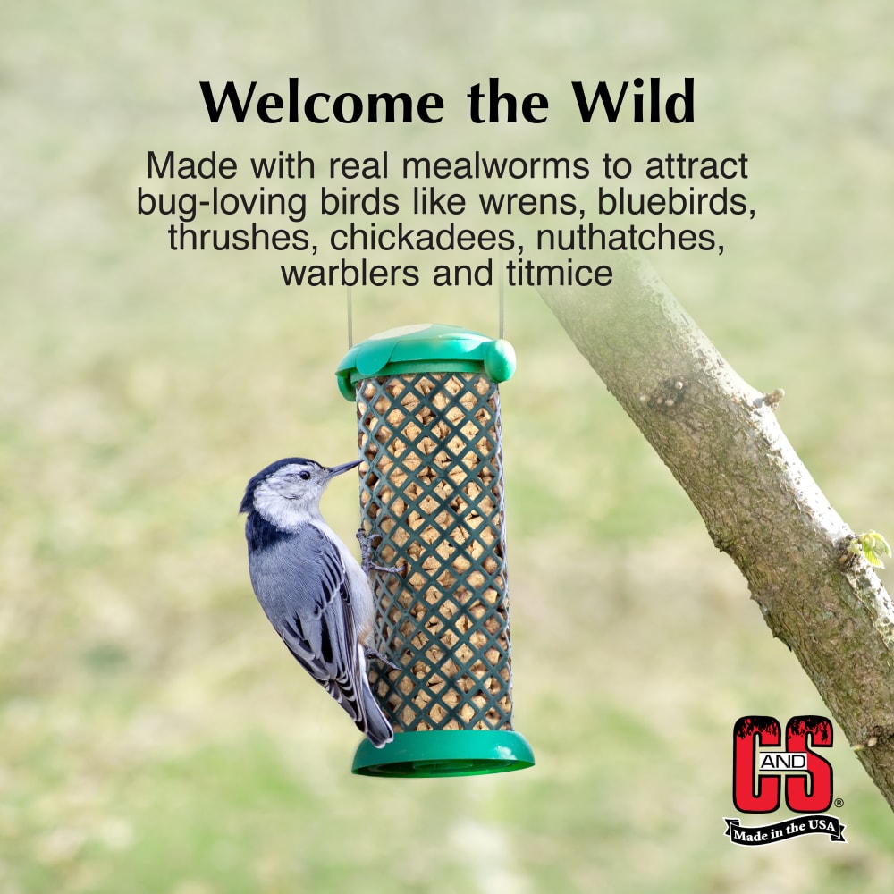 - MADE WITH MEALWORMS to provide an appealing source of protein and energy to bug-loving birds! A great option during breeding season when birds tend to eat more insects.