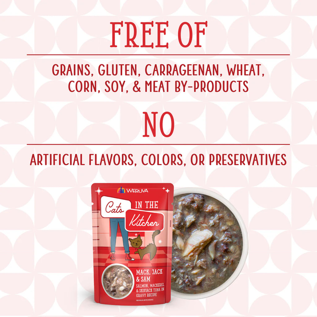 Salmon, Mackerel & Skipjack Tuna in Gravy.