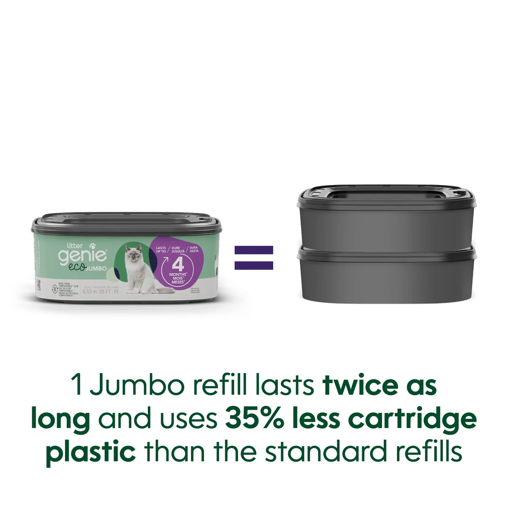 Looking for compostable bags for your Litter Genie? Look no further! The Eco Jumbo Refill reduces plastic waste and litter odours at the same time. This 1-pack provides up to 4 months of use and is designed to break down naturally within 6 months.