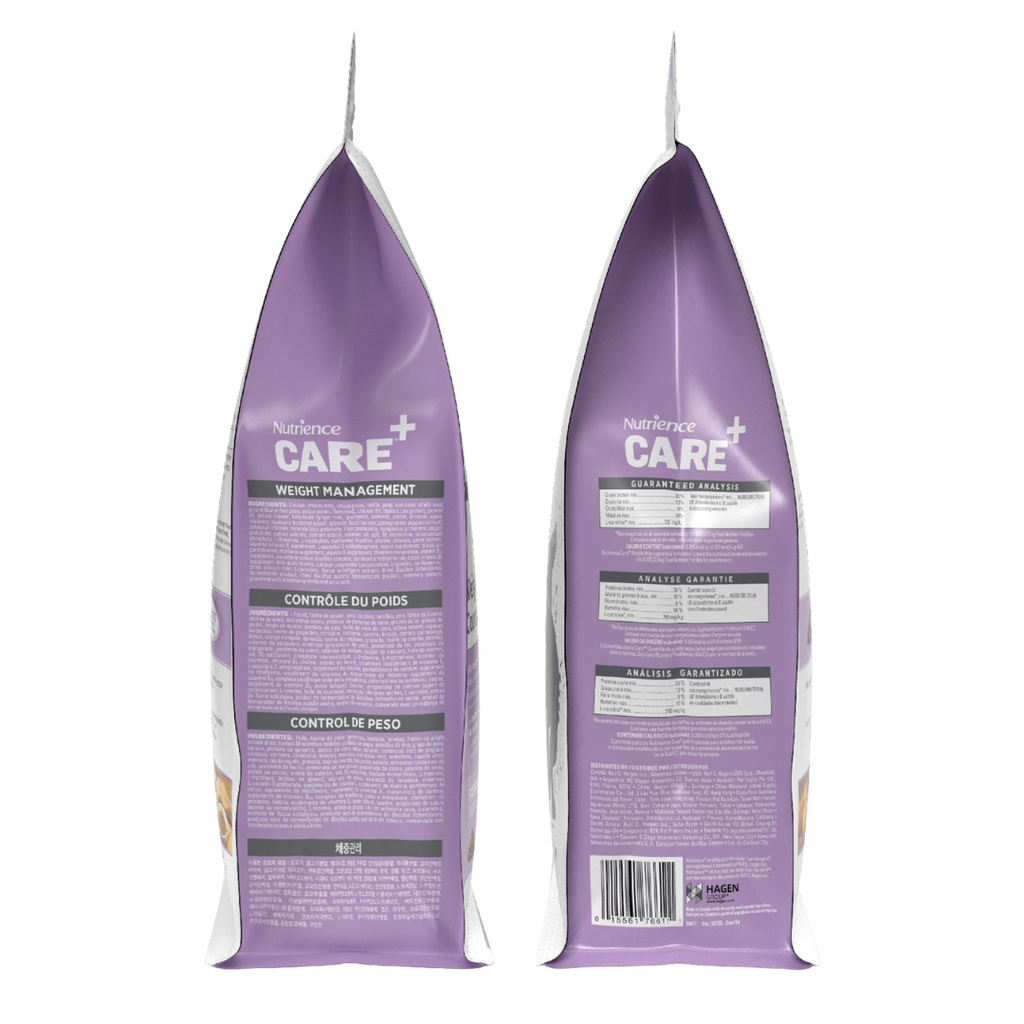 Nutrience Care Weight Management is formulated to help your dog maintain a healthy body condition through a precise balance of high fiber, protein and reduced fat, as well as the added benefits of L-carnitine.