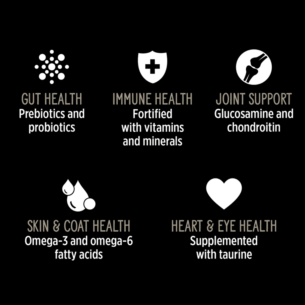 Moreover, taurine, a key ingredient in this recipe, plays a crucial role in supporting heart and eye health. This formula is free of wheat, soy, corn, dairy, egg and chicken!