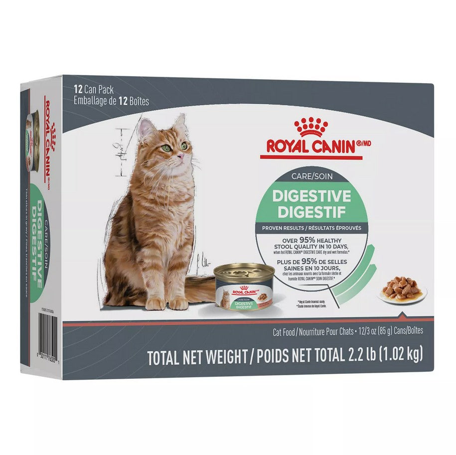 Complement your cat's diet with Royal Canin Feline Care Nutrition Digestive Care Thin Slices In Gravy Canned Cat Food. Royal Canin Digestive Care Adult Wet Cat Food is formulated to provide digestive support for your adult cat with a sensitive stomach. Highly digestible proteins promote digestive health and optimal stool quality so that your cat can enjoy their gravy cat food. This formula also helps your cat maintain a healthy weight. In addition, a uniquely balanced blend of vitamins and minerals helps promote your pet's overall physical health and wellness. Try pairing this wet sensitive stomach cat food wet formula with Royal Canin Digestive Care Dry Cat Food for a textured meal your cat will surely love. Serve up a bowl of Royal Canin Feline Care Nutrition Digestive Care Thin Slices In Gravy Wet Cat Food to provide your cat with tailored nutrition that helps them thrive.