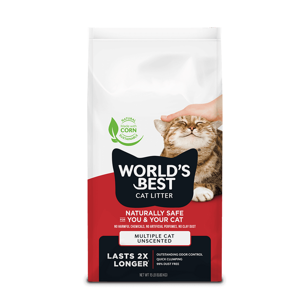 World's Best Cat Litter is a revolutionary new cat litter that instantly traps odors left behind by your feline friend and forms tight, easy scoop clumps on contact. It neutralizes any foul ammonia smell so you can breathe easily! This natural corn formula is also completely free of silica dust which means pet parents and pets don't have to worry about breathing in harmful particles while cleaning - just fresh smells all day long with minimal cleanup time or dusty clouds.